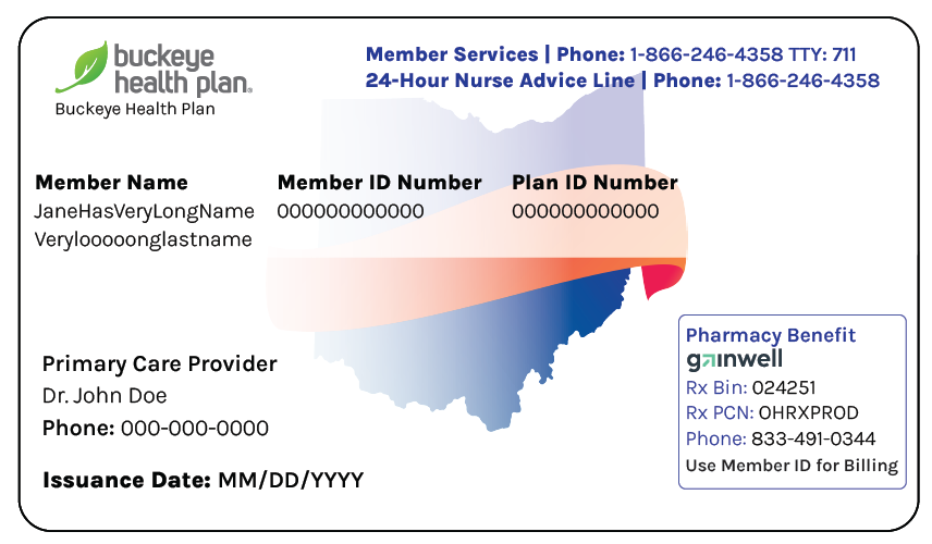 Buckeye is changing how pharmacy claims are paid for Medicaid members. We will mail you a new ID card in September to replace your current card. The new ID card has new information on it, so it is important that you begin using it on October 1, 2022. Bring your new card with you to your pharmacy when you get a prescription filled and to other medical appointments.